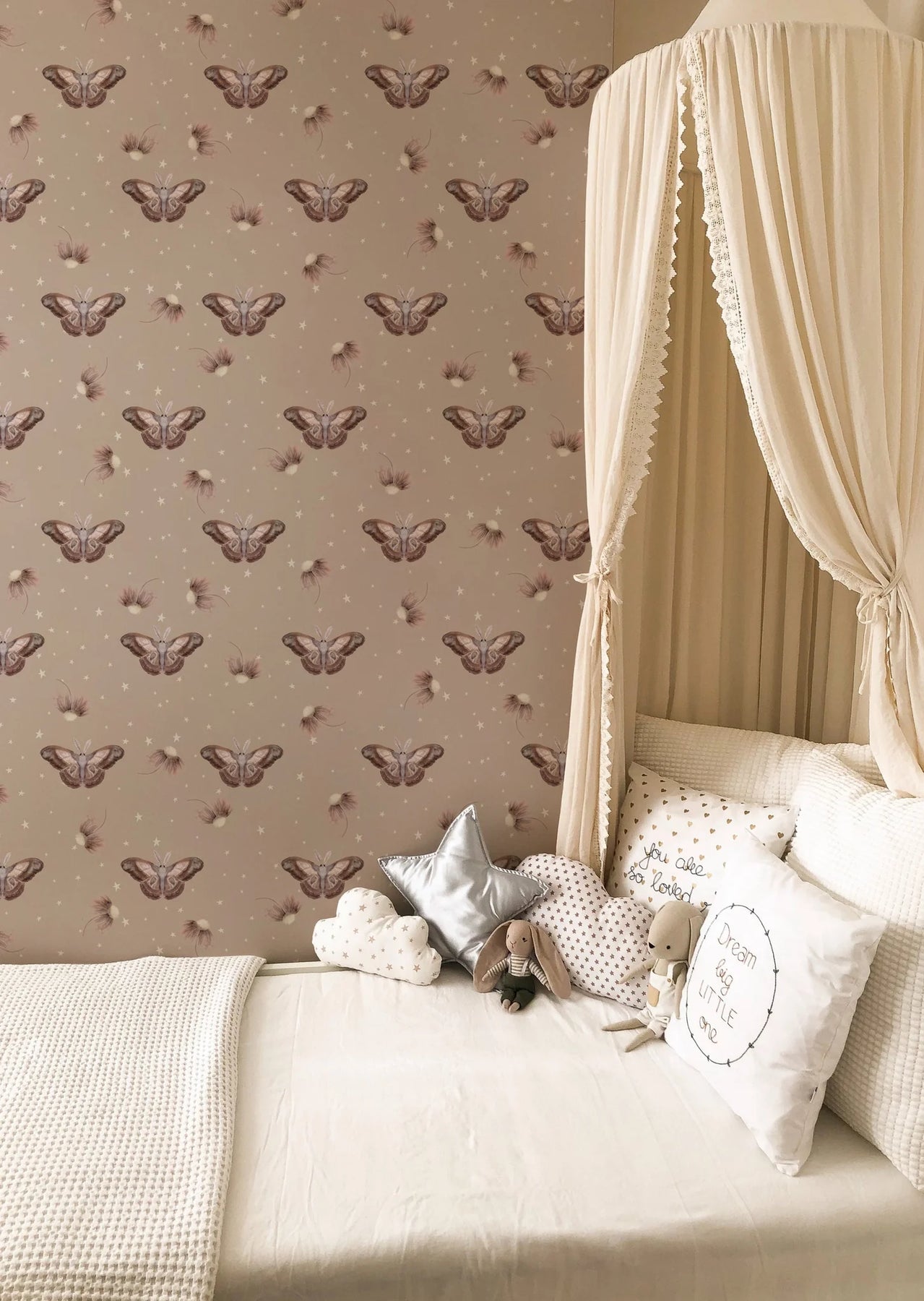 Handmålad av den nederländska konstnären och illustratören Iris Esther för Summer Gray:s första exklusiva barnrumskollektion, denna design bär med sig sagolik nostalgi till moderna familjehem.