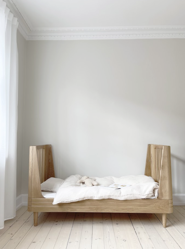 Ombyg nemt din We Are Bitte Nature Baby Bed 2.0 til en rummelig juniorseng. Denne opgradering er fremstillet i bæredygtig massiv eg med familiesikkerheden i fokus. Den forlænger tremmesengens levetid og bevarer dine børneværelsesmøbler tidløse, efterhånden som dit barn vokser.