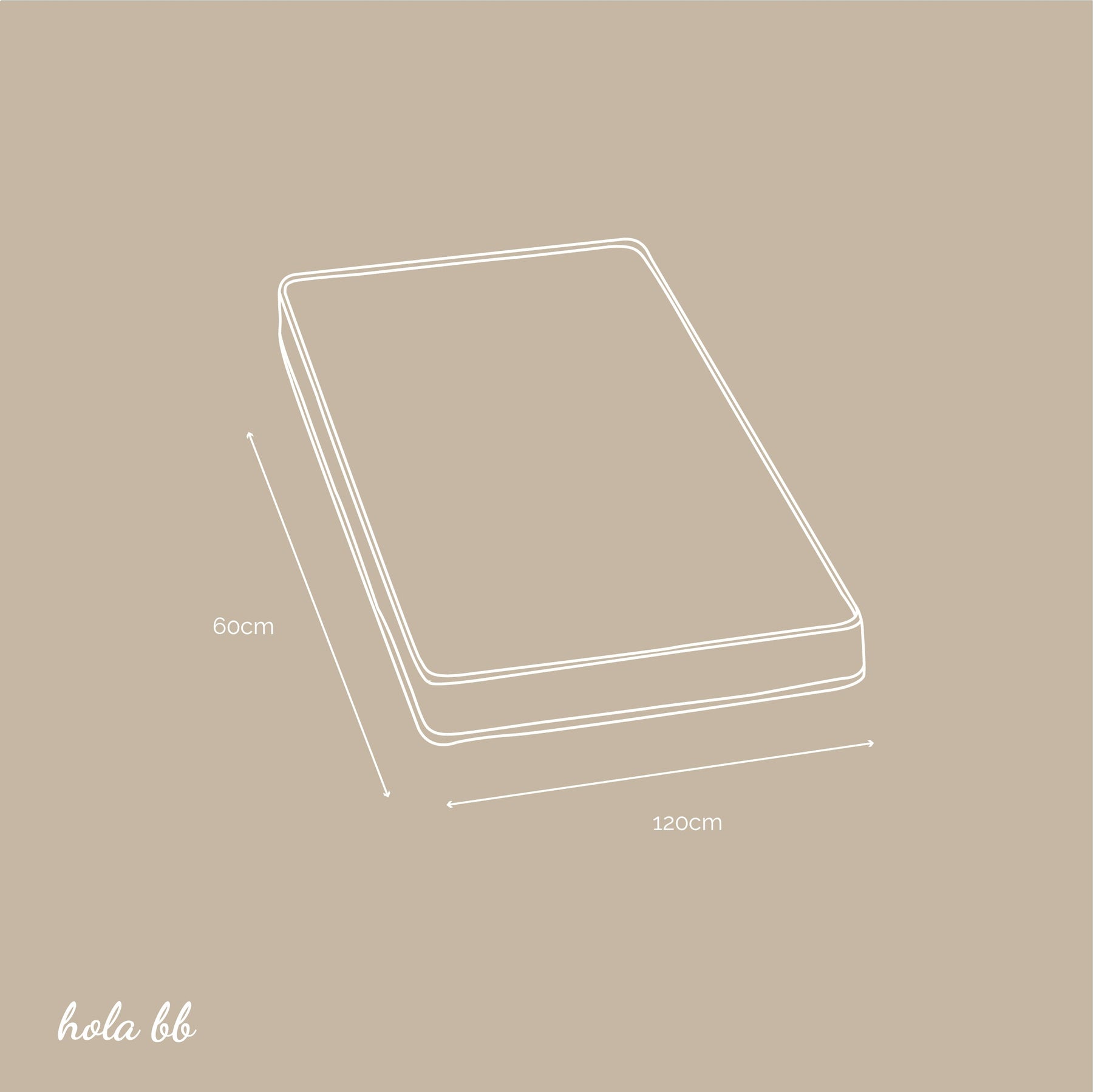 - Størrelse: 60 x 120 cm; kompatibel med de fleste europæiske babytremmesenge.