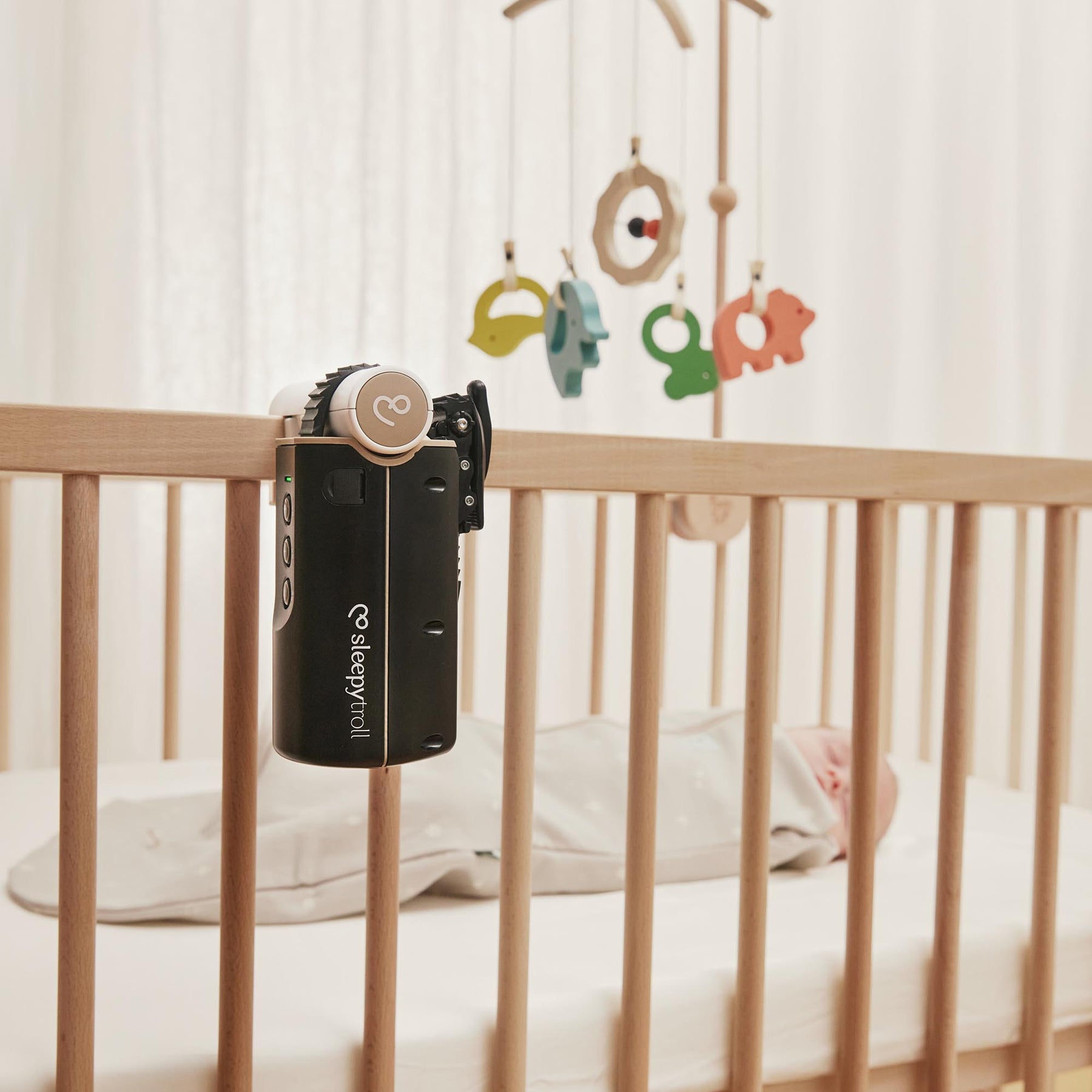 - App-styring via Sleepytroll: juster gyngeintensiteten, aktiver sovetilstand, opsæt rutiner og modtag notifikationer.