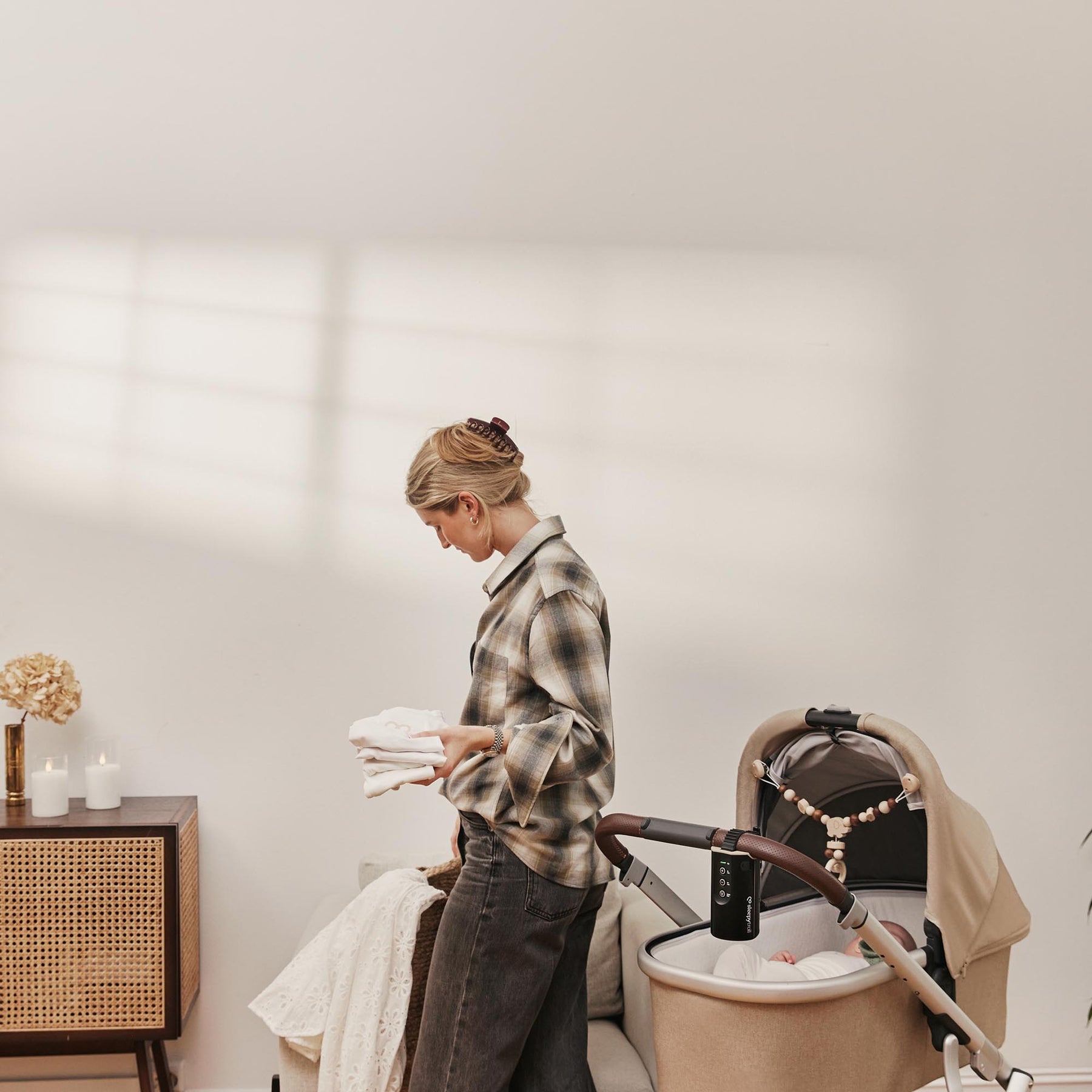 Berolig dit lille vidunder med blid, naturlig gynge ved et enkelt tryk på en knap. Denne app-forbundne, sensorintelligente babygynger fastgøres sikkert til din barnevogn eller vogn og reagerer øjeblikkeligt, når barnet rører på sig - så lurene strækkes ud, og du får en velfortjent pause, uanset om I er hjemme eller på farten.