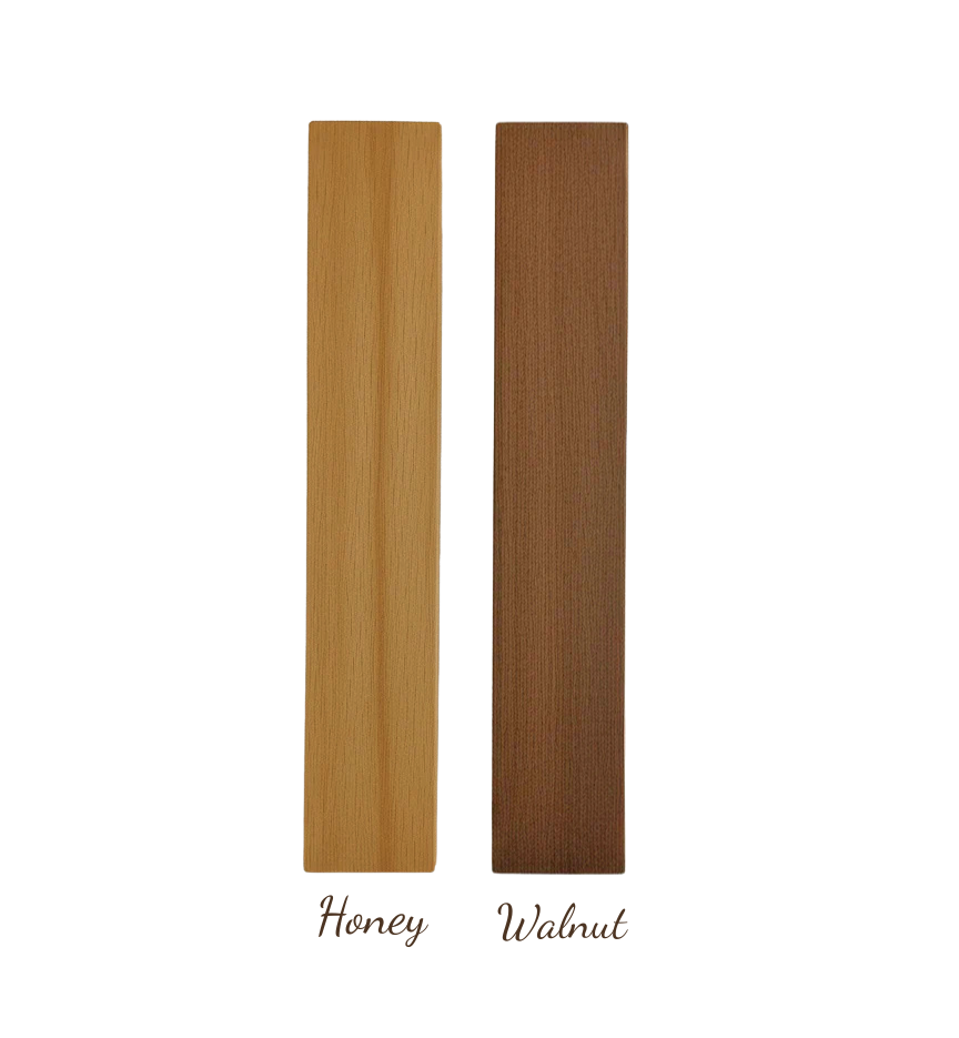 - Die warme Honey- oder satte Walnut-Oberfläche lässt sich mühelos in Ihre Farbpalette integrieren.