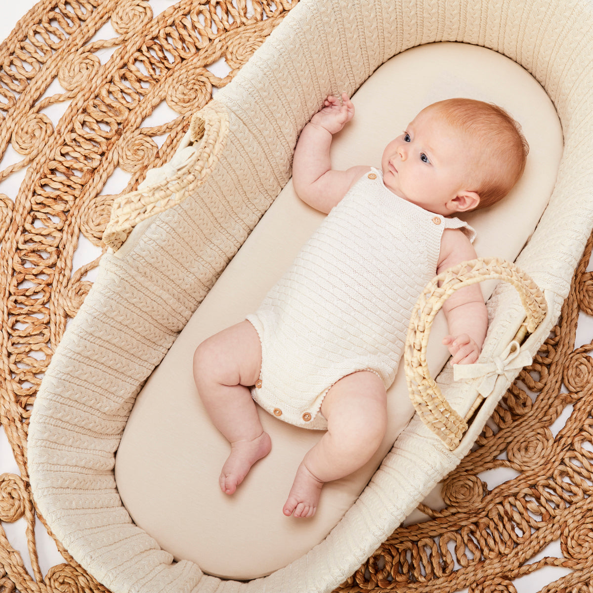 - Elasticated fitted design; fits Moses basket mattresses approx. 30 × 70 cm to 35 × 75 cm