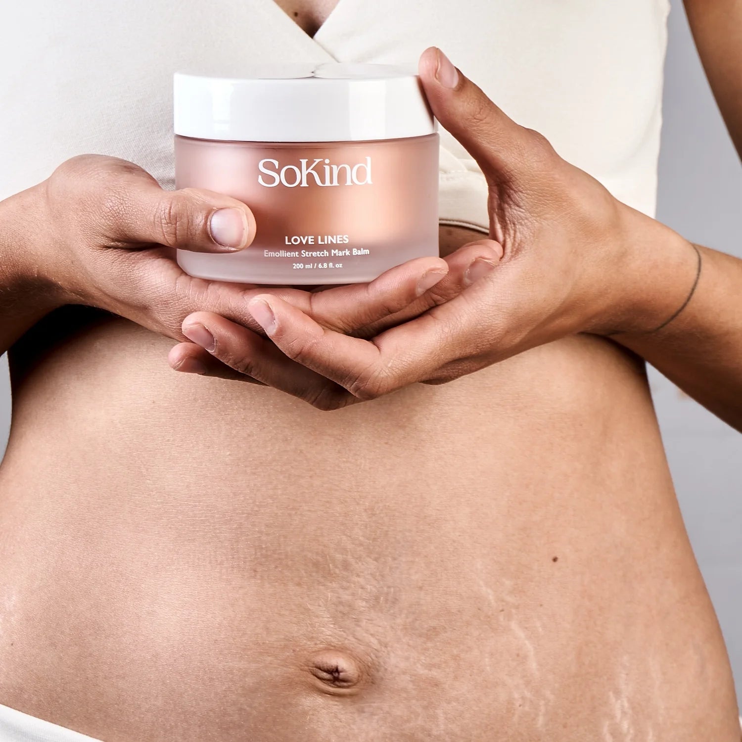 Meet the fragrance-free, AllergyCertified stretch mark balm powered by Regestril™—crafted to visibly minimize stretch marks while leaving skin deeply nourished and beautifully supple.