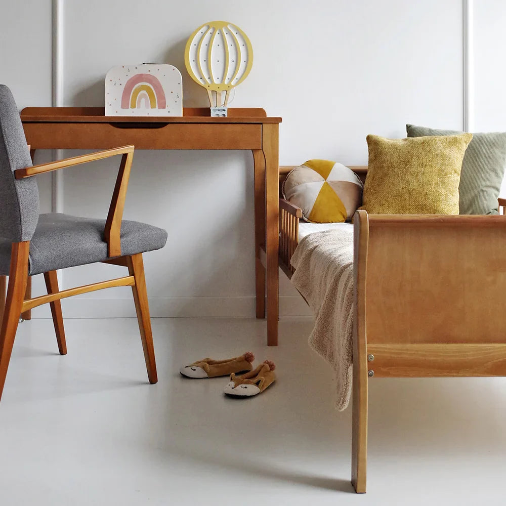 Spark creativity with this vintage-inspired children’s desk in a warm light‑walnut tone. Crafted from solid pine with a full‑width drawer and an adaptable, clutter‑free desktop, it fits beautifully in the nursery, playroom, or kids’ bedroom—explore the Woodies Vintage collection to complete the look.