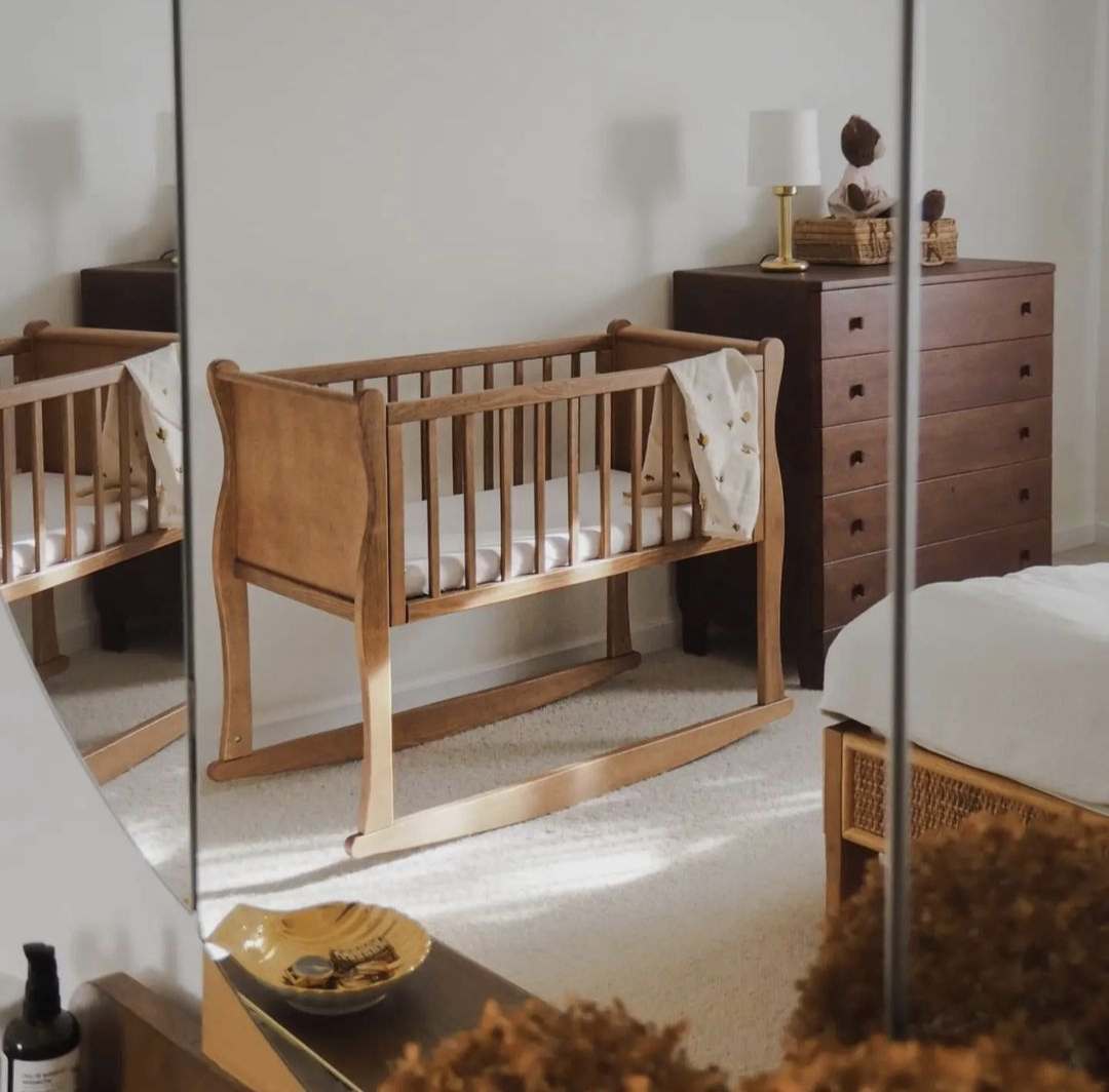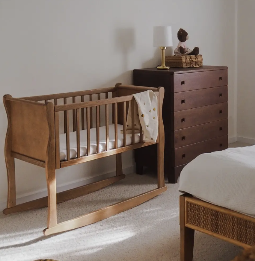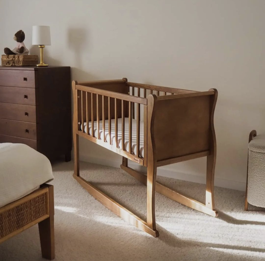Convierte la minicuna Woodies Noble en un mecedor sereno. Confeccionadas en pino macizo, estas patas ofrecen un balanceo suave y relajante; el acabado 'Light Walnut' (nogal claro), de aire vintage, aporta calidez. Montaje en minutos.