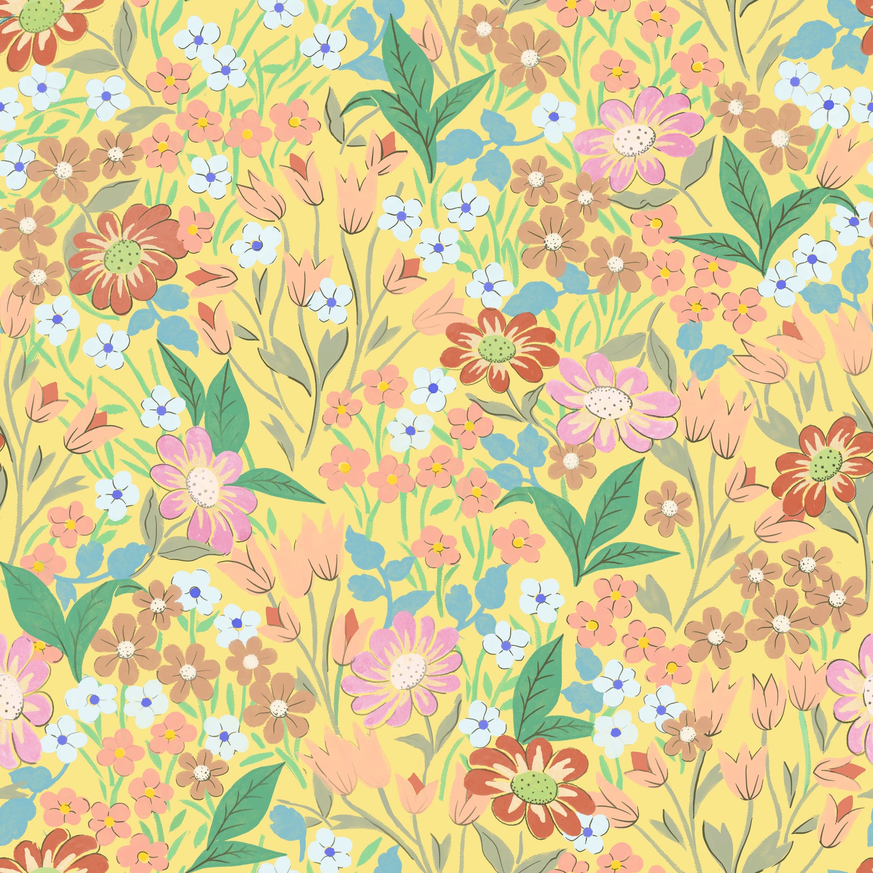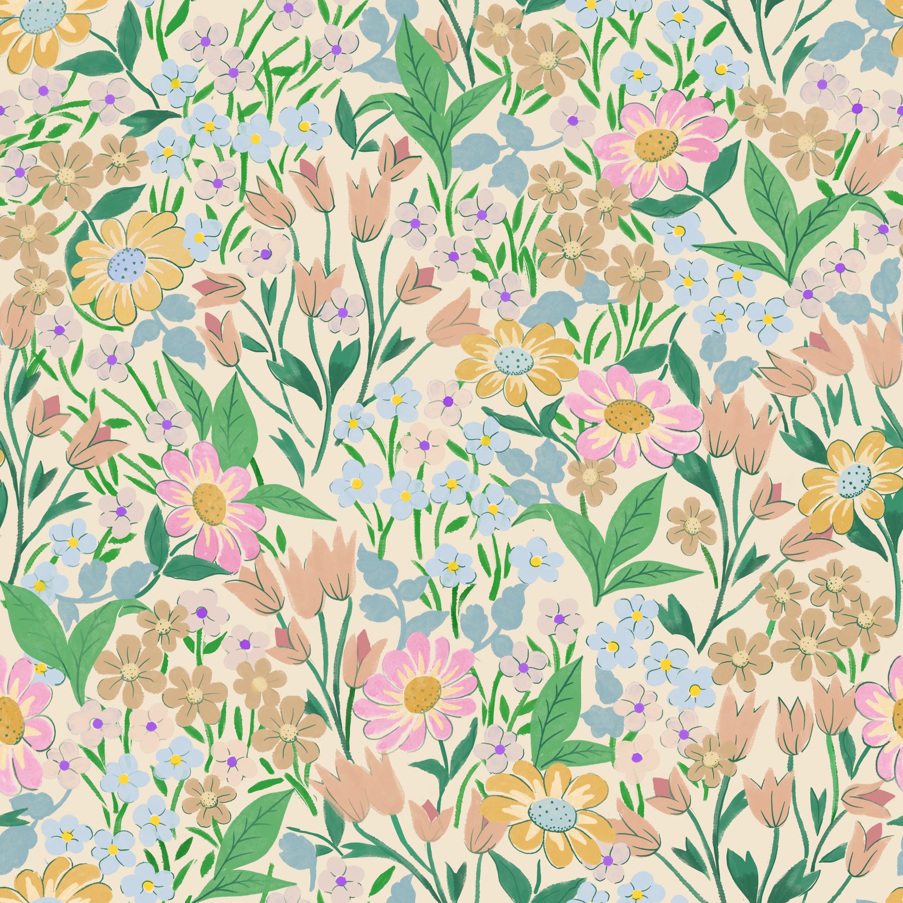 De délicates fleurs sauvages dessinées à la main apportent le charme discret d’une balade champêtre à votre intérieur. Dessiné par Lily Odette, ce motif enjoué capture la lumière du début d’été pour illuminer chambres, couloirs et recoins cosy.