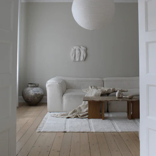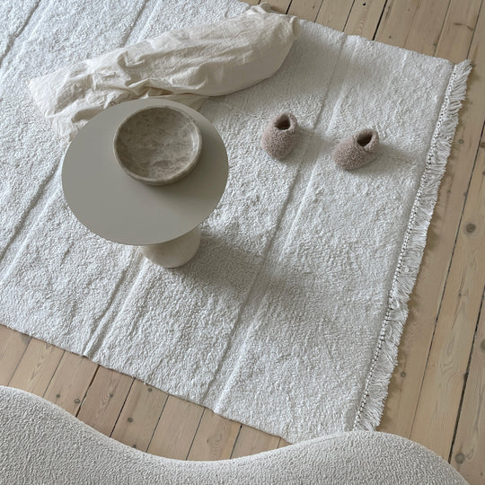 Le tapis North — We Are Bitte offre un style intemporel, un entretien facile (lavable en machine à 30 °C) et une praticité idéale pour la vie de famille.  Un tapis 100 % coton, lavable, conçu pour les intérieurs modernes. Dimensions : 140 x 220 cm.