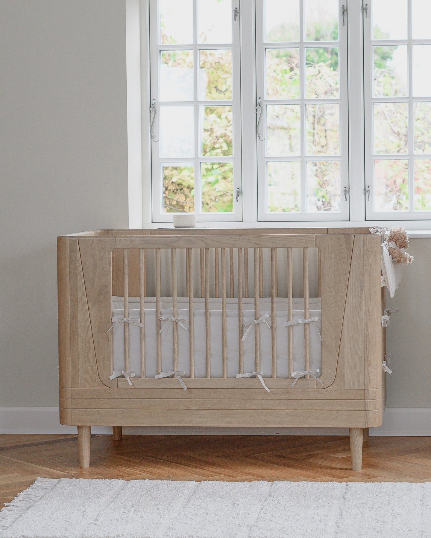 Miękki ochraniacz z organicznej bawełny, dopasowany do łóżeczka Nature Baby Bed. Otula maluszka i dodaje pokoikowi przytulnego, eleganckiego wykończenia.