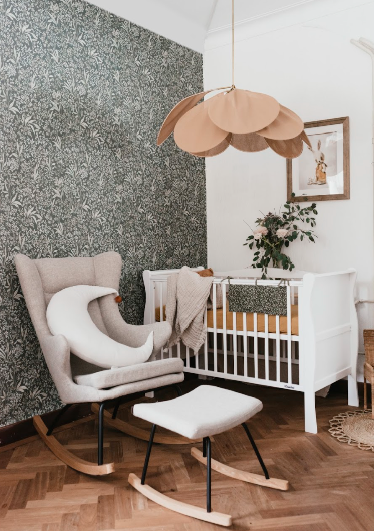 - Taze beyaz bitişli zamansız vintage görünüm, her bebek odası dekorunu yükseltir.